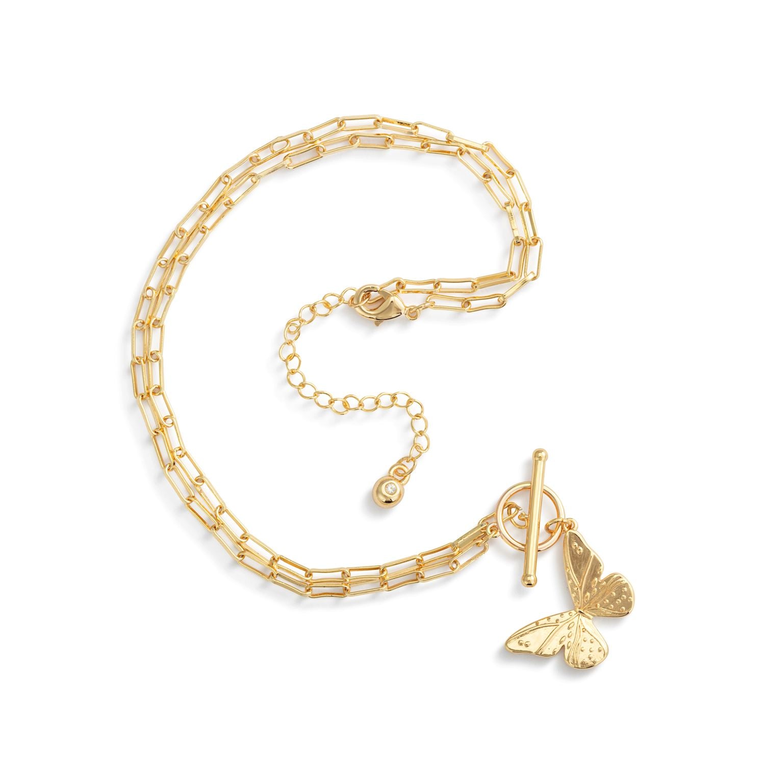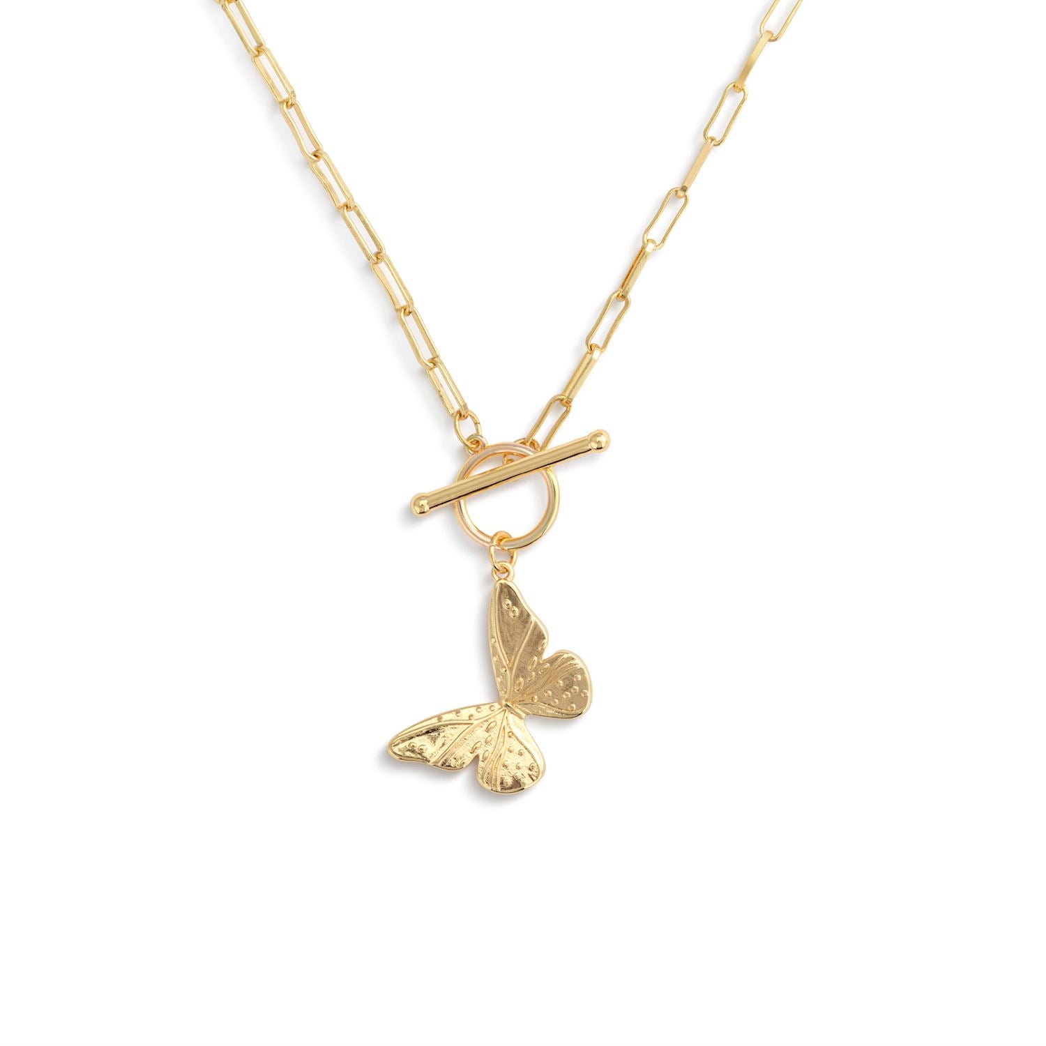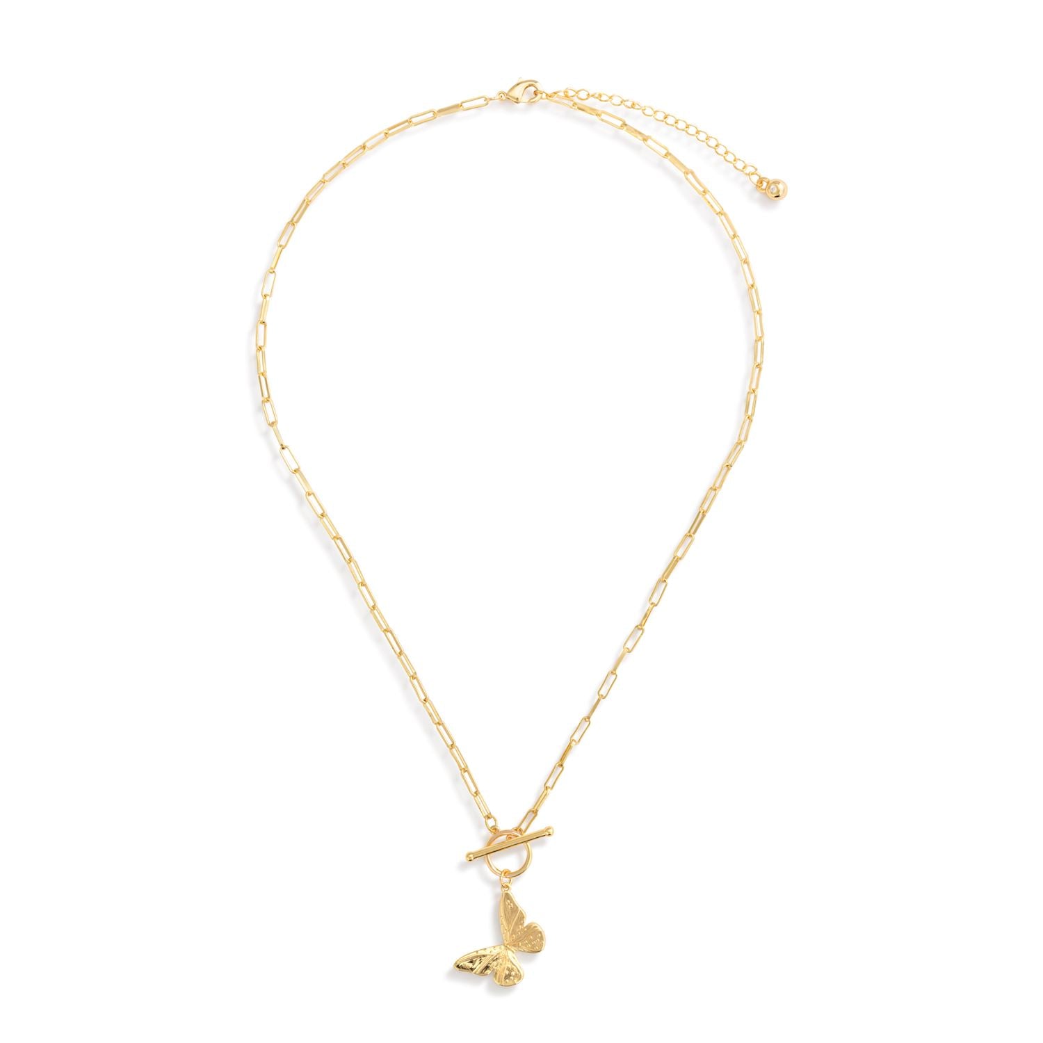 Introducing the Butterfly Toggle Gold Necklace - a whimsical and elegant accessory featuring Elisabeth Hays' signature butterfly design. Made with high-quality materials, this necklace will add a touch of charm to any outfit, helping you look and feel your best. Perfect for showing up to life!