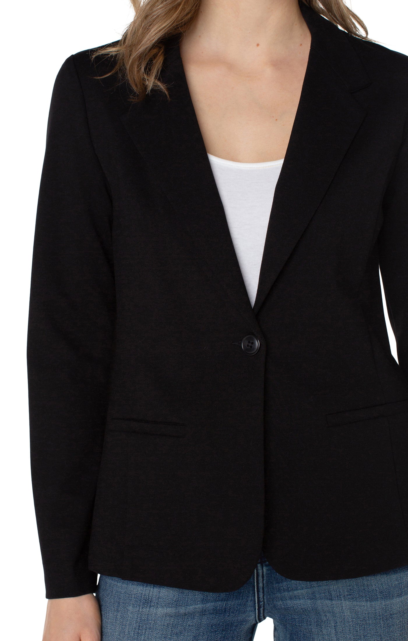 Elevate your wardrobe with the Chelsea Blazer, a timeless black blazer featuring a sleek one-button closure for a refined silhouette. Designed with practical pockets, it combines style and functionality effortlessly. Perfect for professional settings or sophisticated casual looks, this blazer offers a polished finish to any outfit.