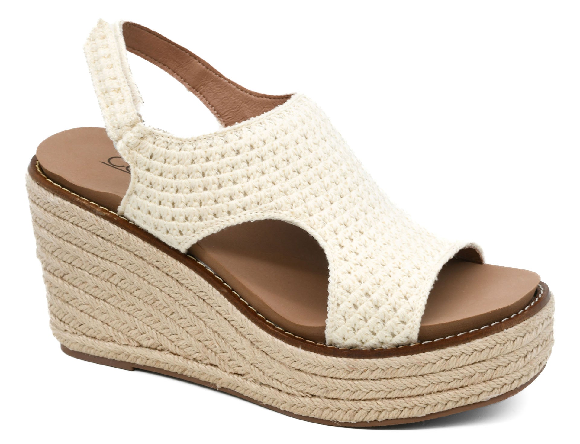 Experience the perfect blend of comfort and style with our Natural Crochet Freddie Wedge. Featuring a soft cork sole and velcro buckle for a comfortable fit, this wedge also boasts crochet detailing for an added touch of elegance. Elevate your look with this must-have footwear for any occasion.